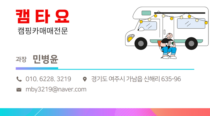 캠핑카전용 매매상사 캠타요 민과장입니다!
